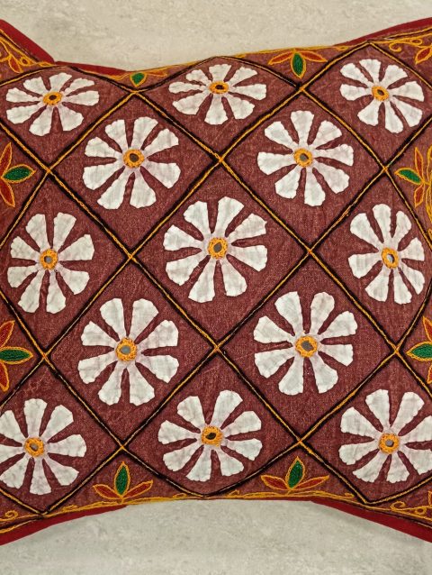 Brown Aari Applique Cushion Cover