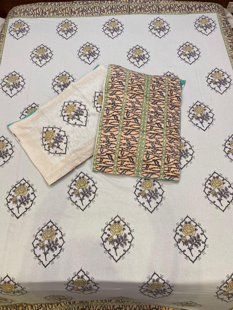 Add to cartGreen & White Mughal Butta Hand Block-print Queen Size Bedsheet