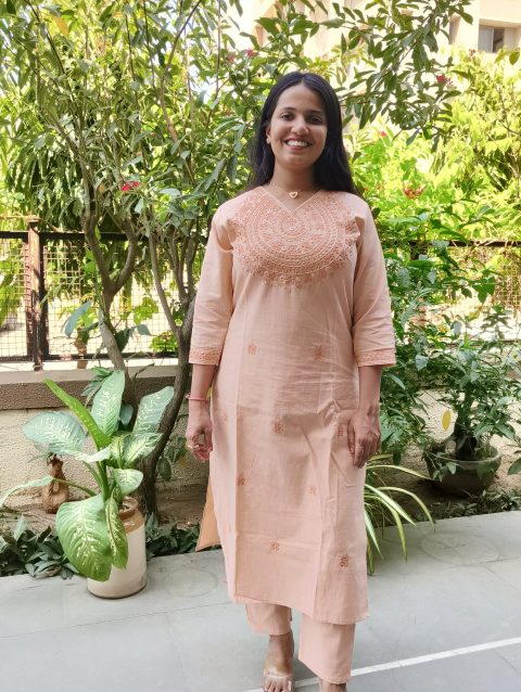 This two-piece kurti set features a stunning Pastel color palette that exudes warmth and positivity.
