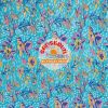 Cotton Fabric with Blue background and colorful pink flowers and Leaves